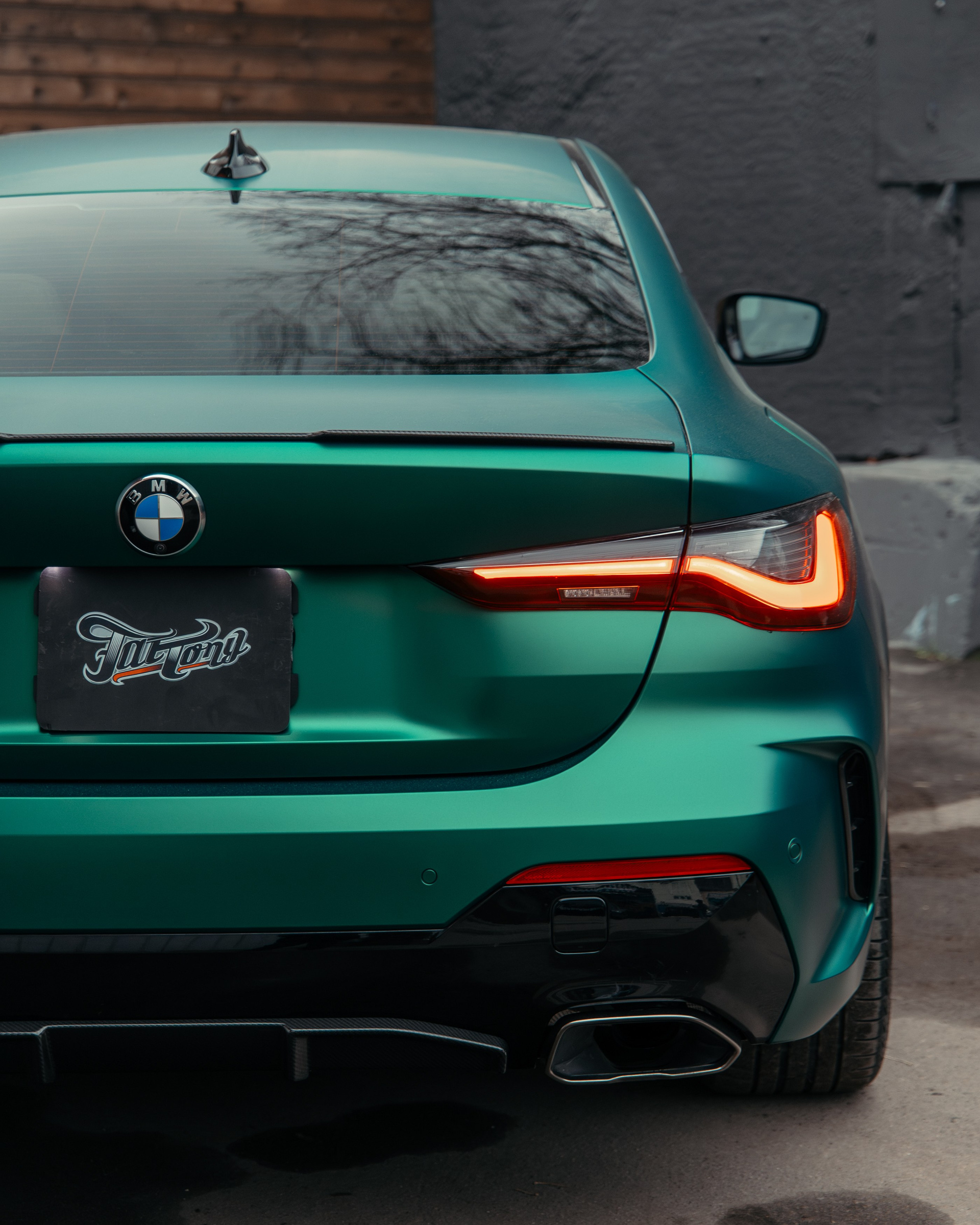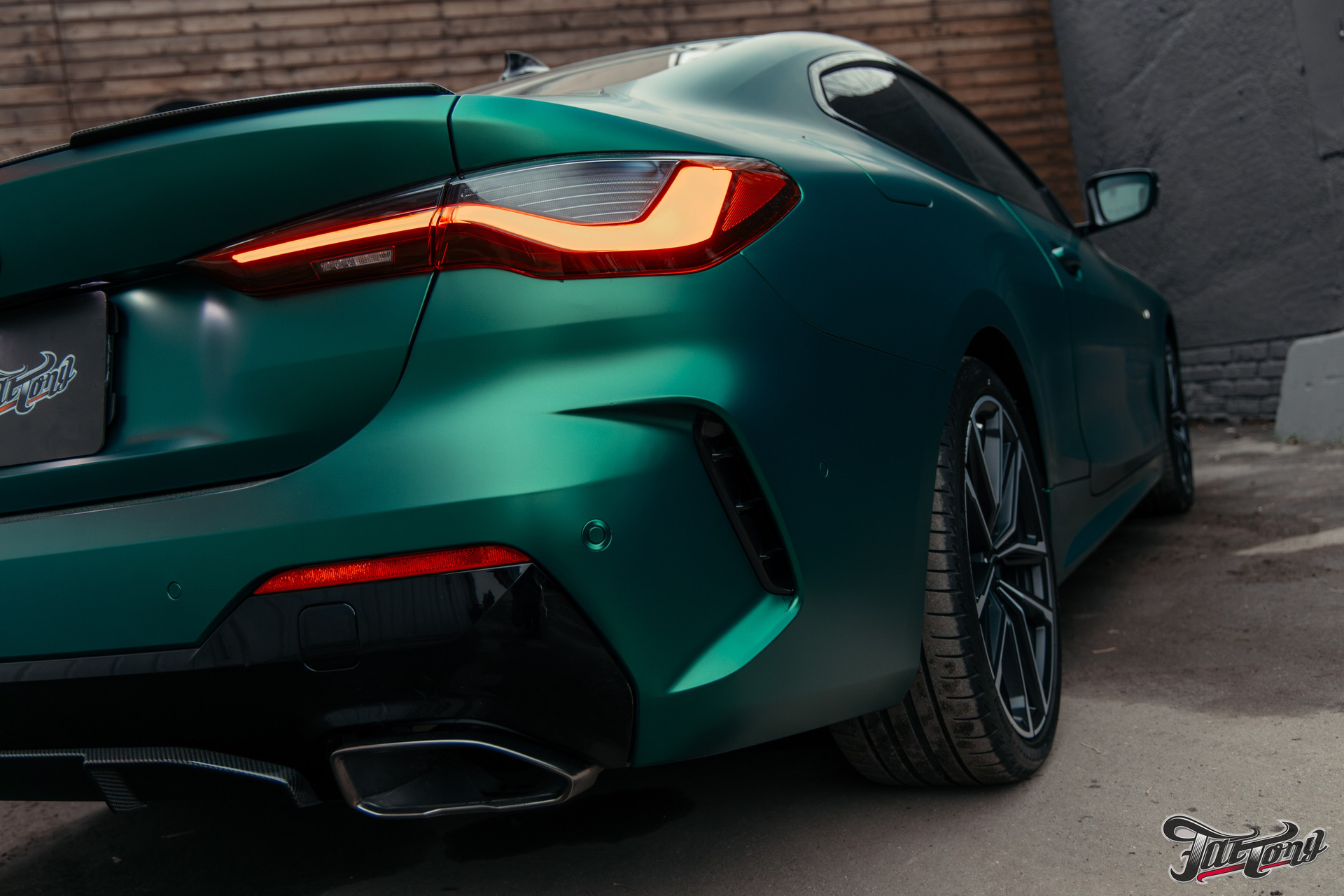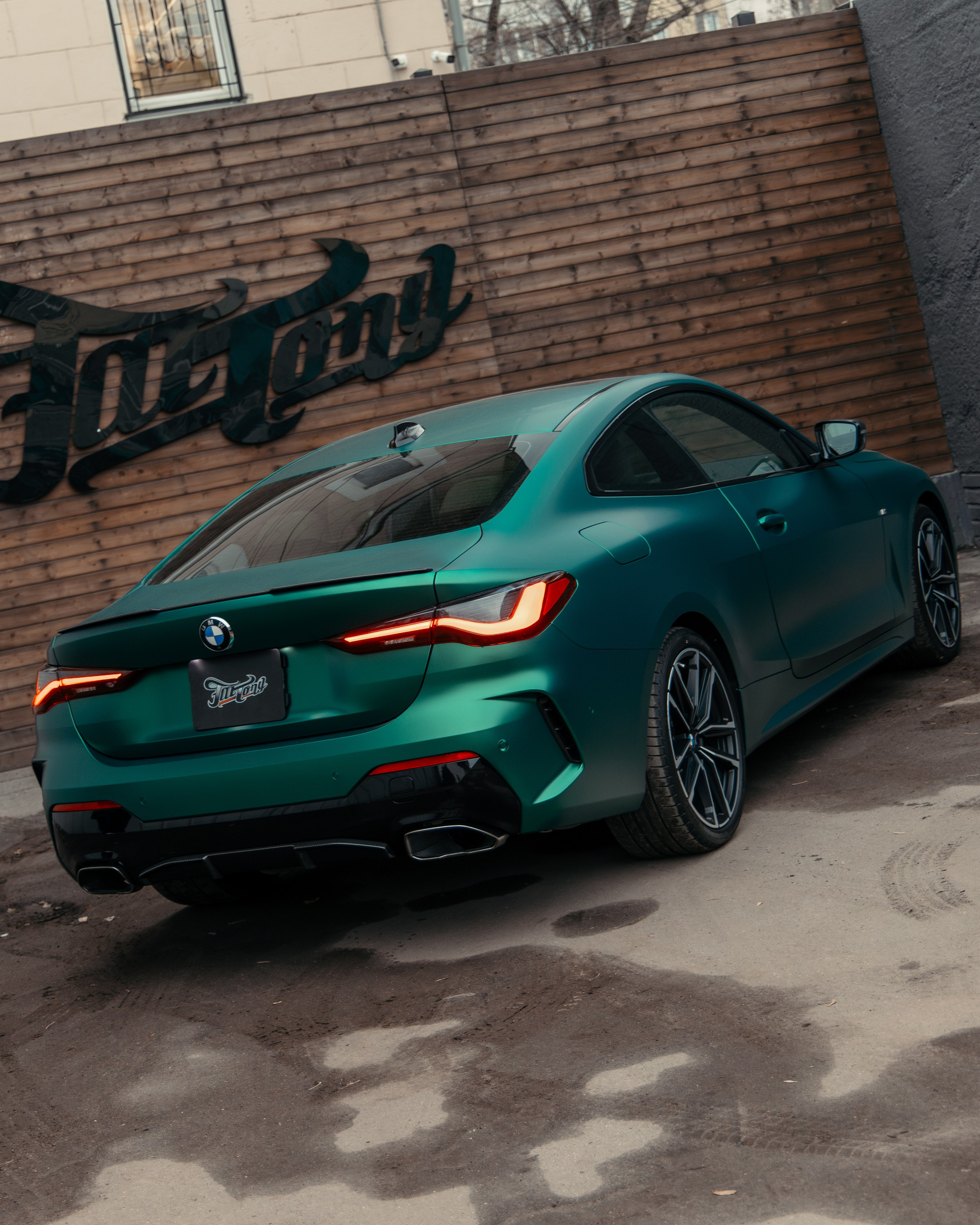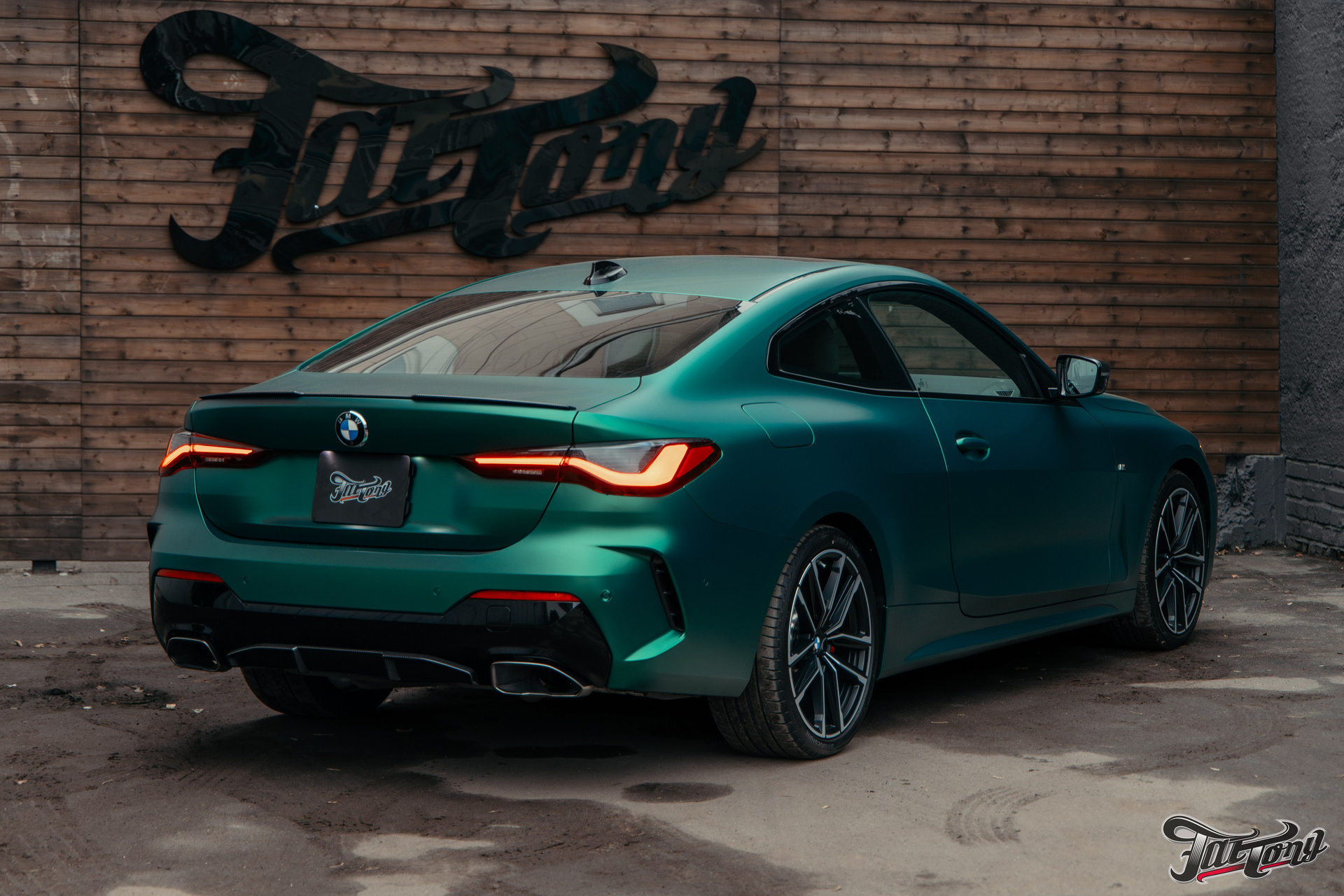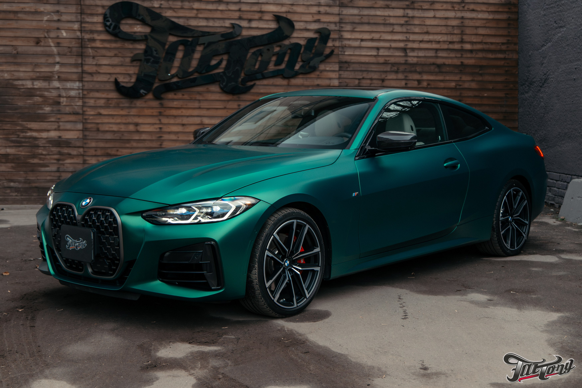 BMW 440i оклейка в зеленый, выхлоп, установка карбонового обвеса, окрас суппортов