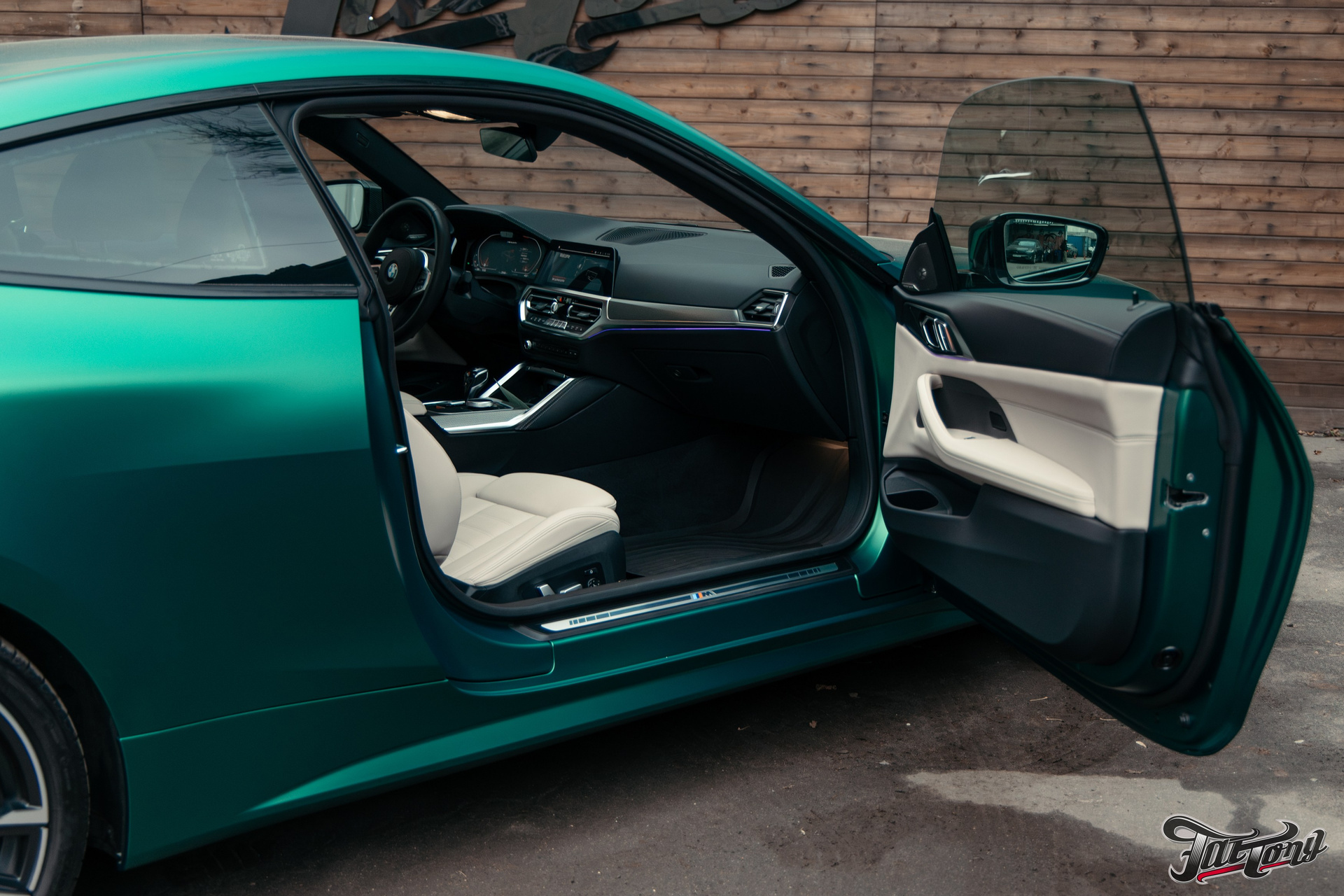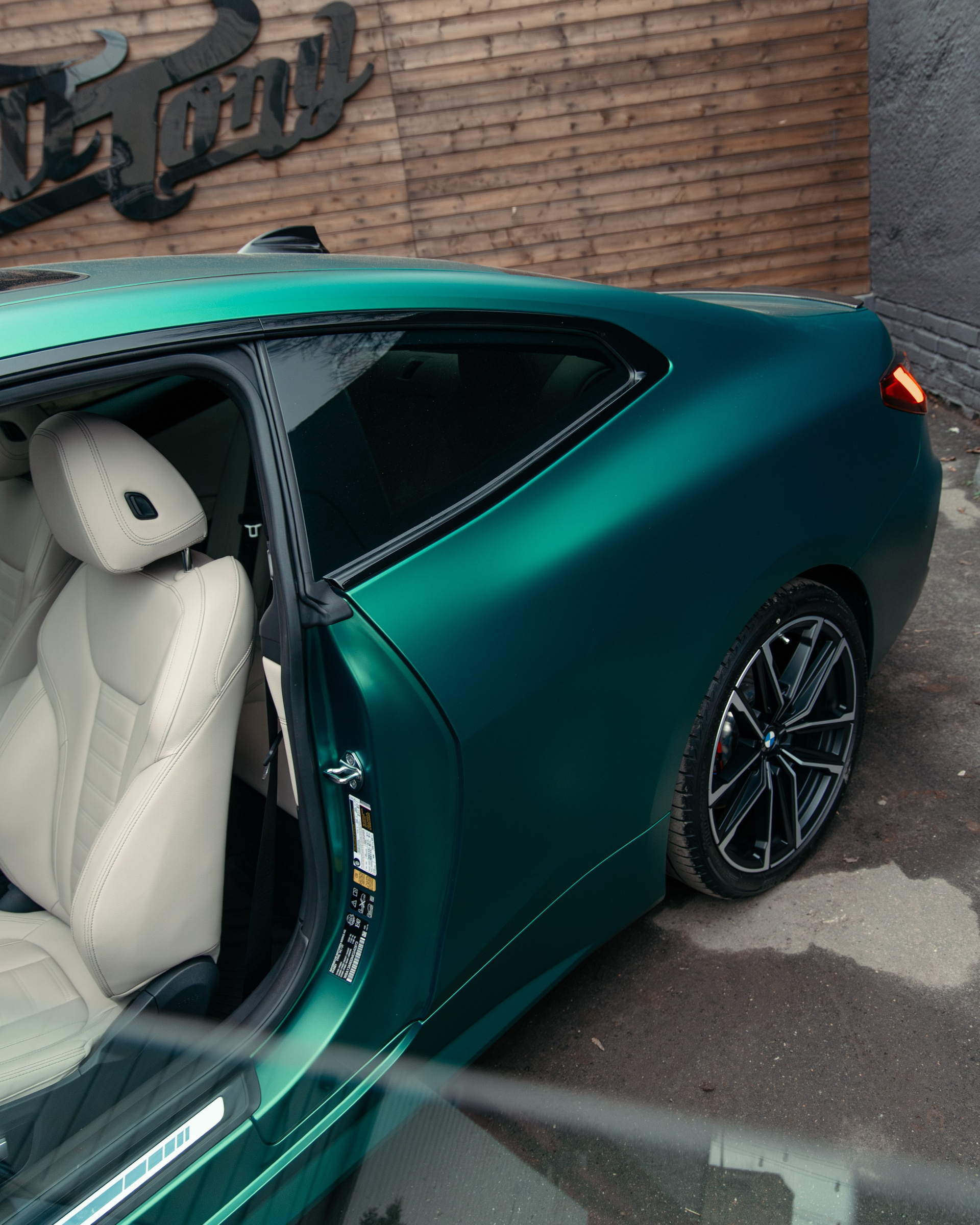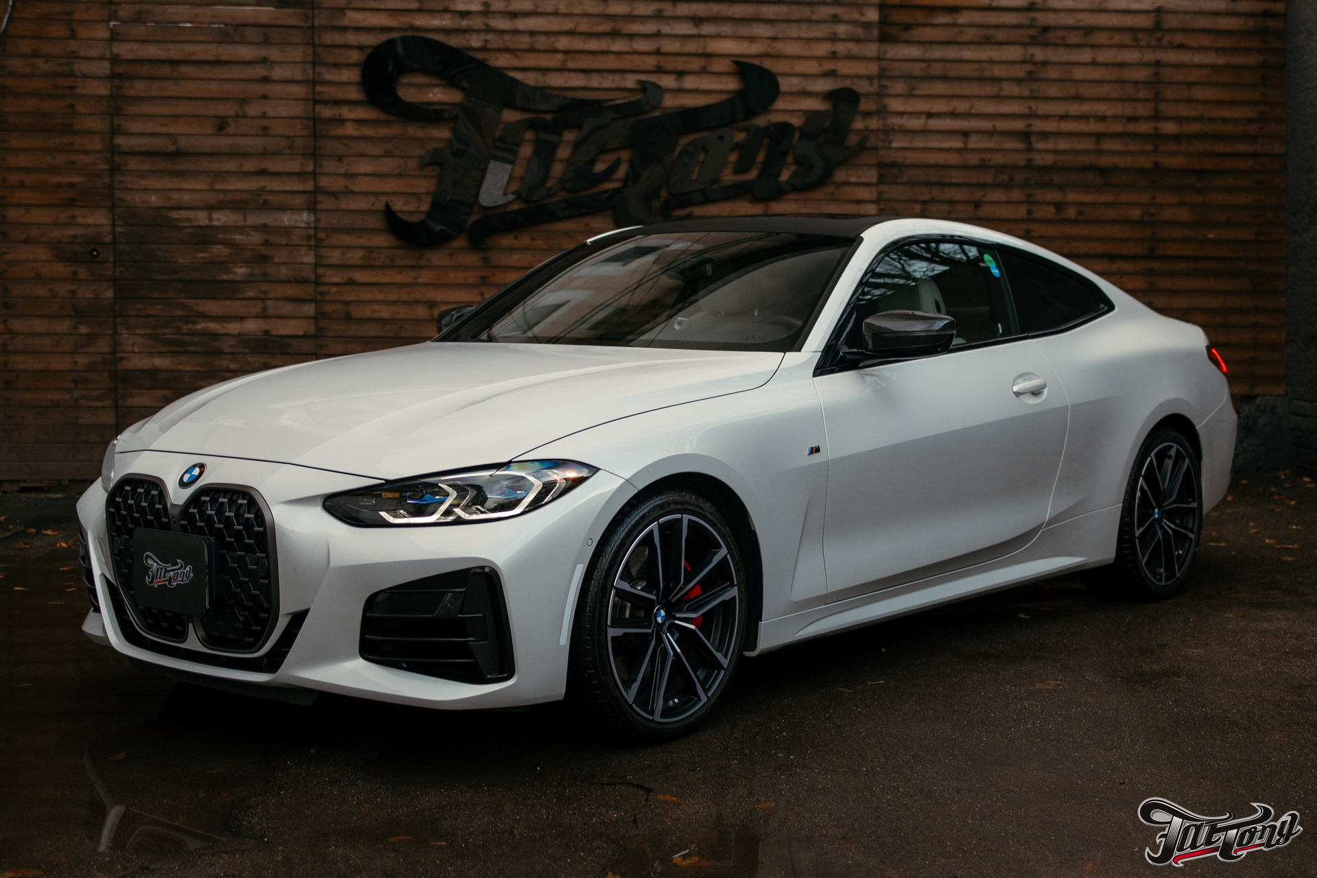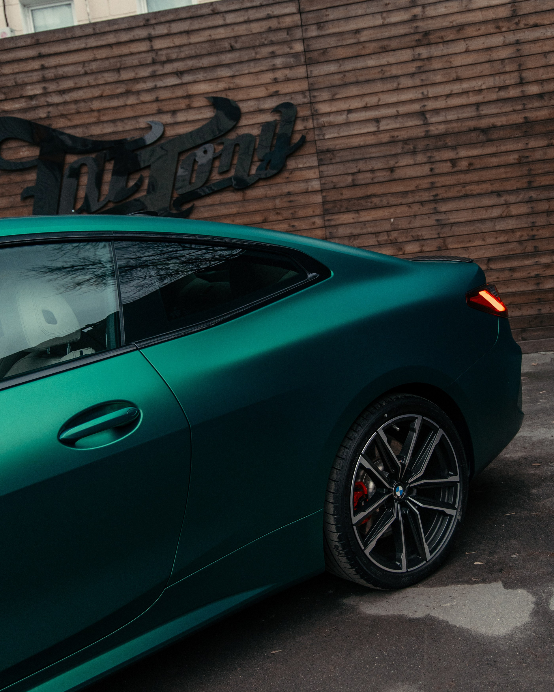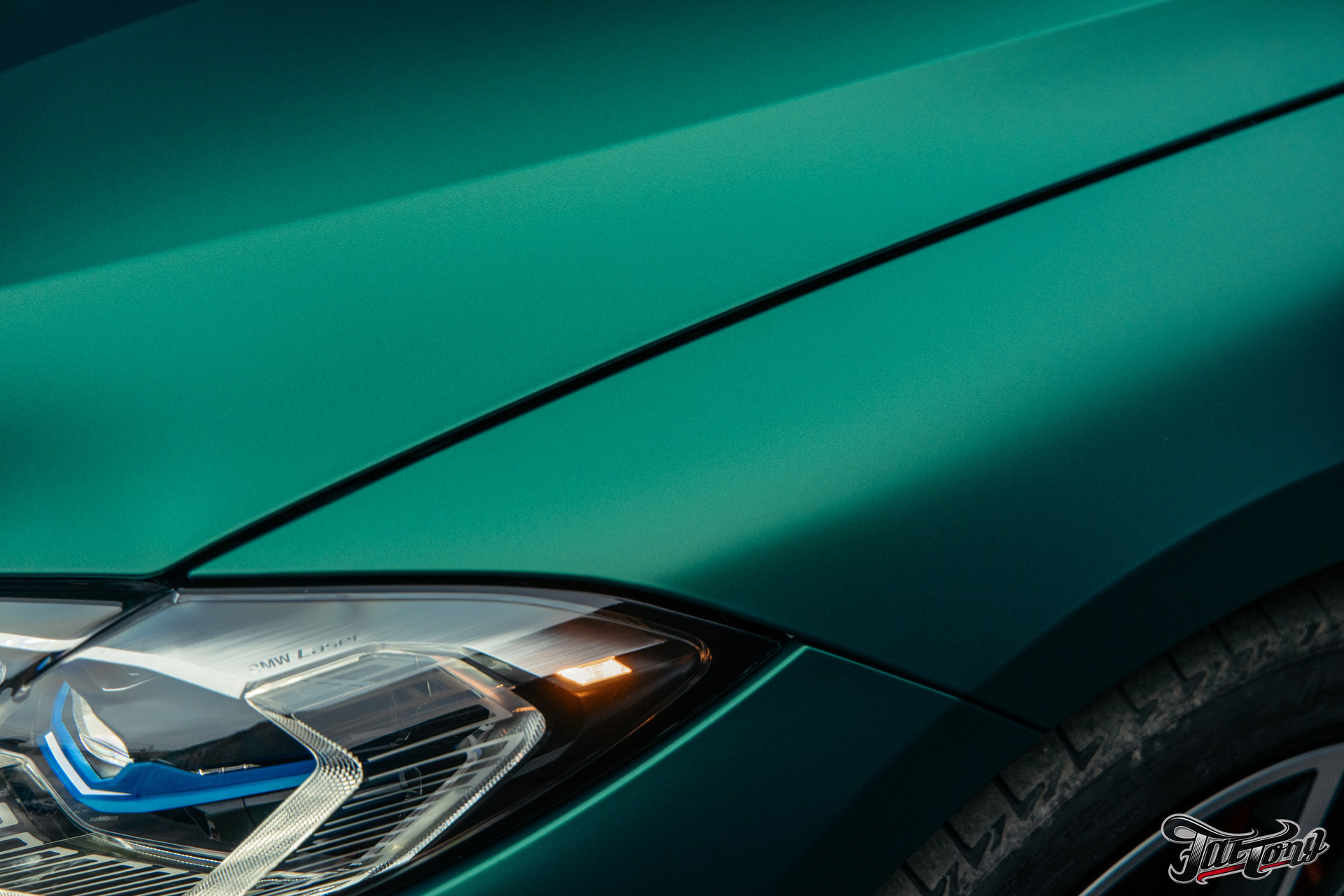 BMW 440i оклейка в зеленый, выхлоп, установка карбонового обвеса, окрас суппортов